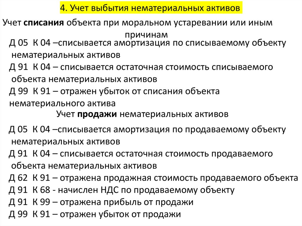 4. Учет выбытия нематериальных активовУчет списания объекта при моральном устаревании или иным