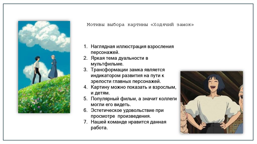 Мотивы выбора картины «Ходячий замок»1. Наглядная иллюстрация взросления