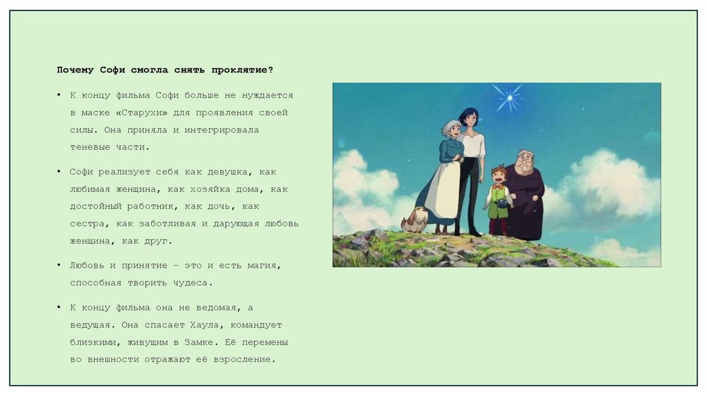 Почему Софи смогла снять проклятие?К концу фильма Софи больше не нуждается