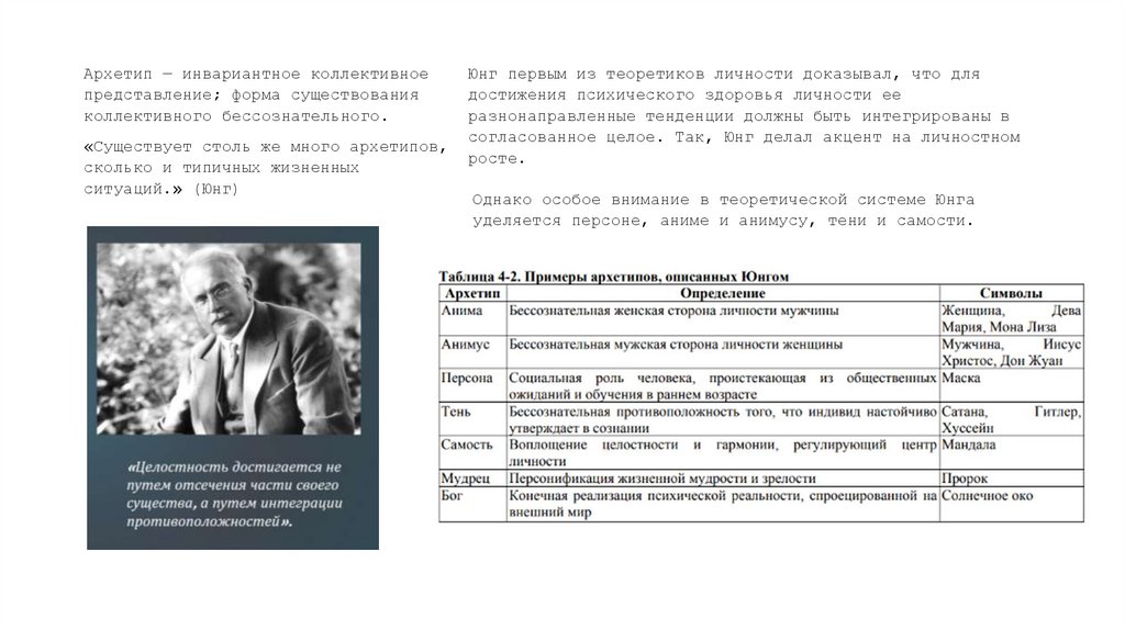 согласованное целое. Так, Юнг делал акцент на личностном