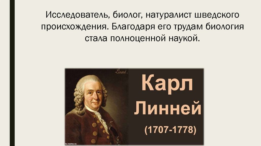 Исследователь, биолог, натуралист шведскогопроисхождения. Благодаря его трудам биология