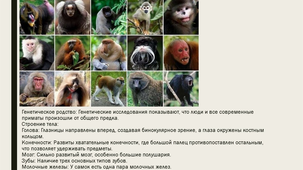 Генетическое родство: Генетические исследования показывают, что люди и все современныеприматы произошли от общего предка.