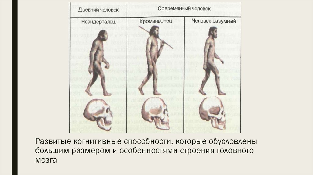Развитые когнитивные способности, которые обусловленыбольшим размером и особенностями строения головного