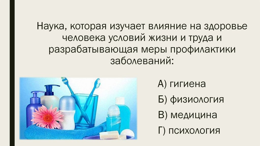 Наука, которая изучает влияние на здоровьечеловека условий жизни и труда и