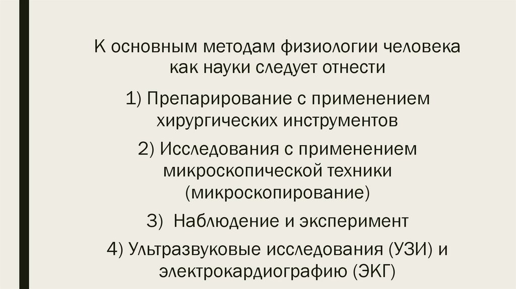 К основным методам физиологии человекакак науки следует отнести