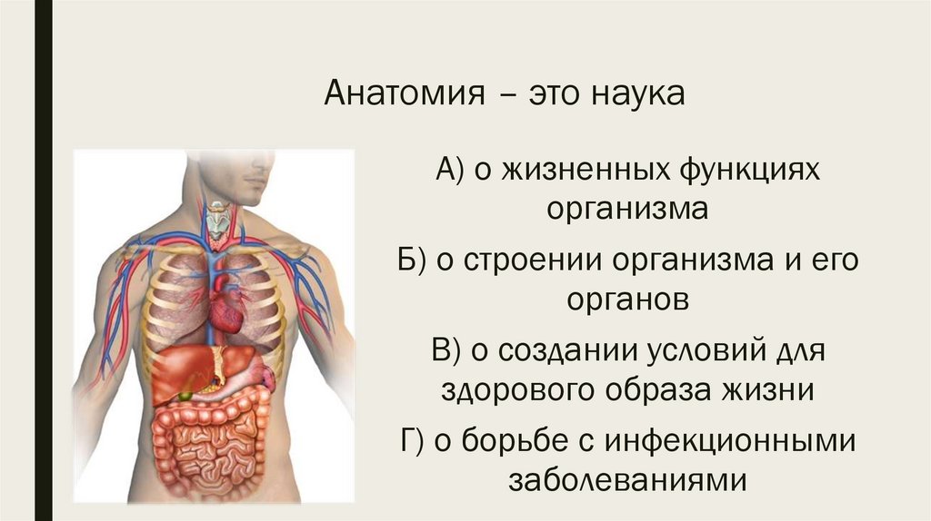 Анатомия – это наукаА) о жизненных функциях