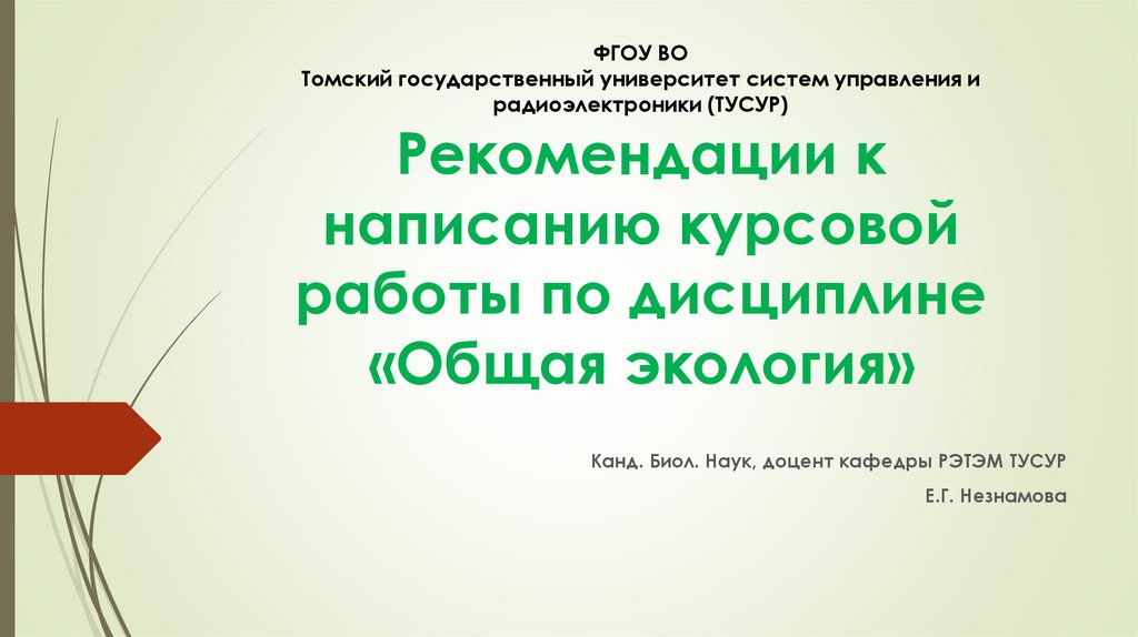 1. ФГОУ ВО Томский государственный университет систем управления и радиоэлектроники (ТУСУР) Рекомендации к написанию курсовой