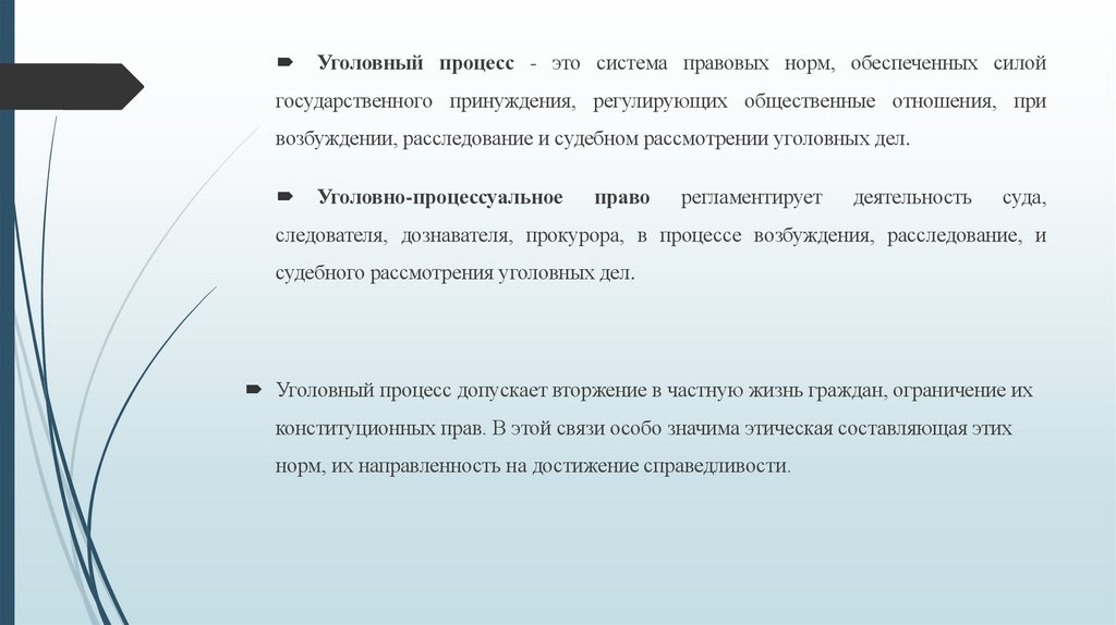 Уголовный процесс - это система правовых норм, обеспеченных силойгосударственного принуждения, регулирующих общественные отношения, при