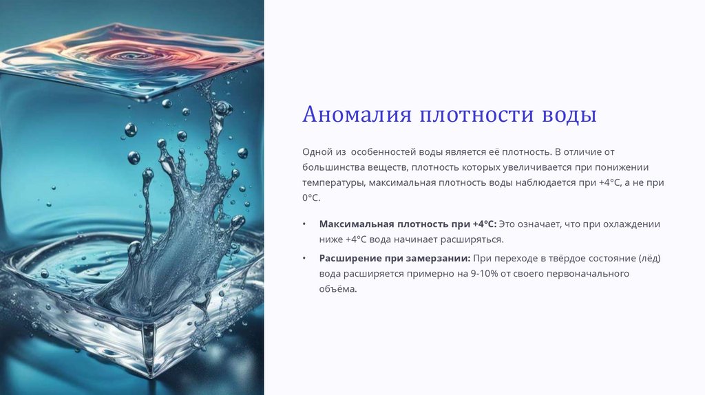 Максимальная плотность при +4°C: Это означает, что при охлаждении
