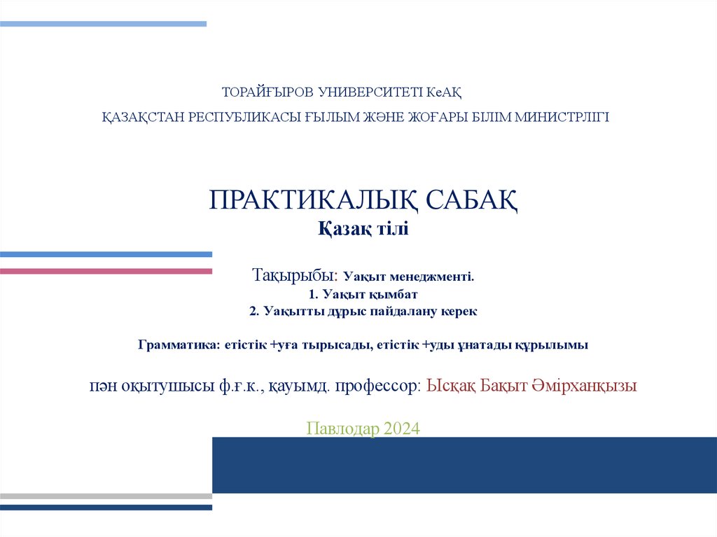 1. ТОРАЙҒЫРОВ УНИВЕРСИТЕТІ КеАҚ