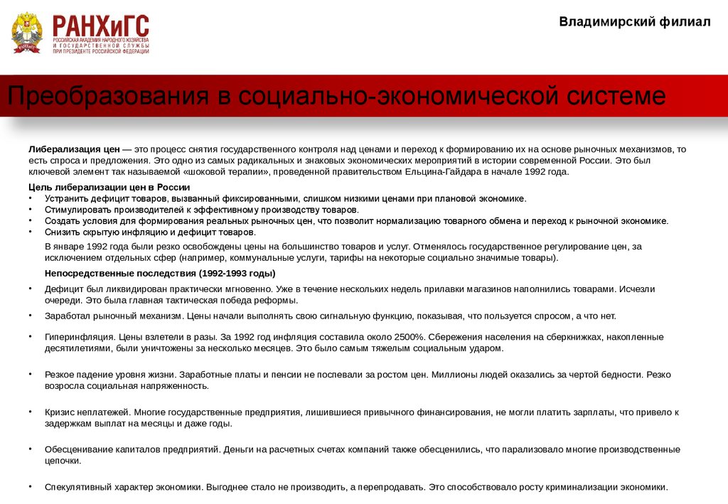 есть спроса и предложения. Это одно из самых радикальных и знаковых экономических мероприятий в истории современной России. Это был