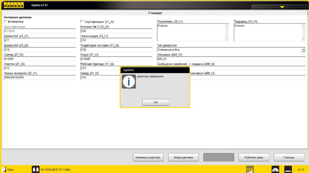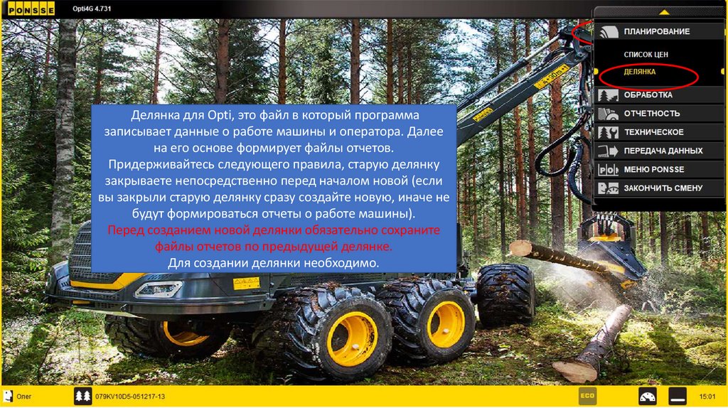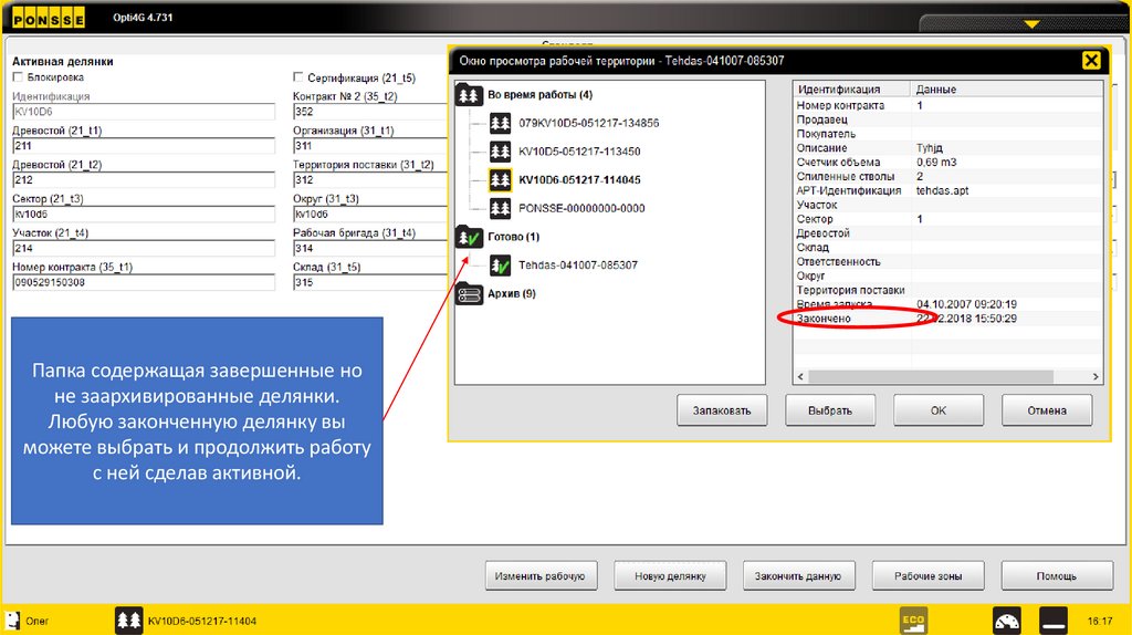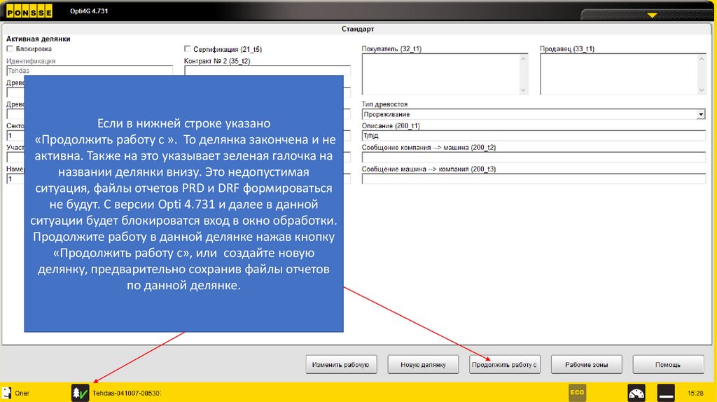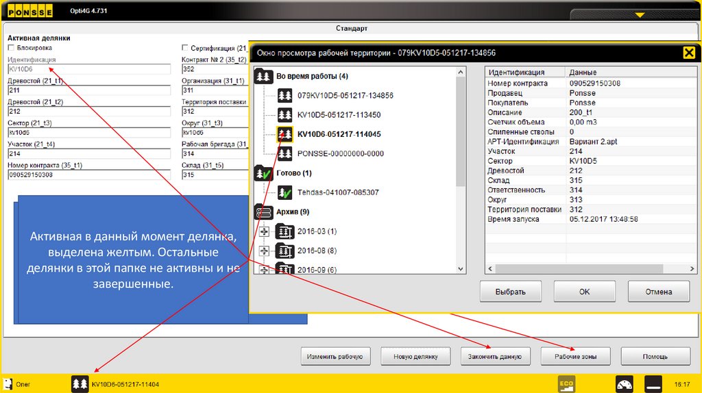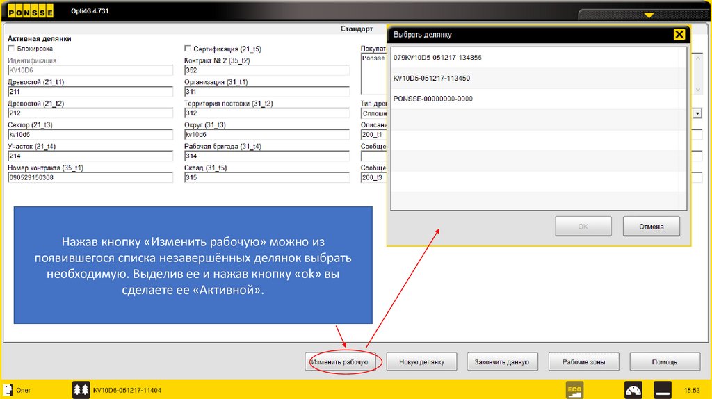 загруженным в данный момент, имеет значение только какая делянка активна. Смена начинается при входе