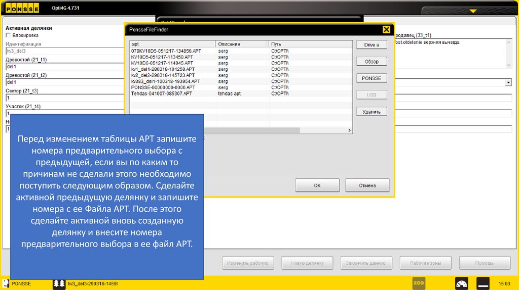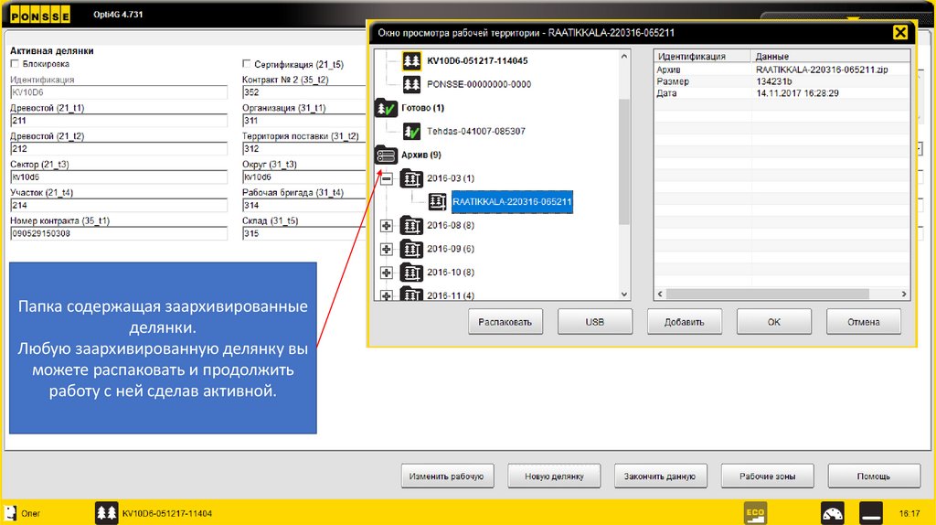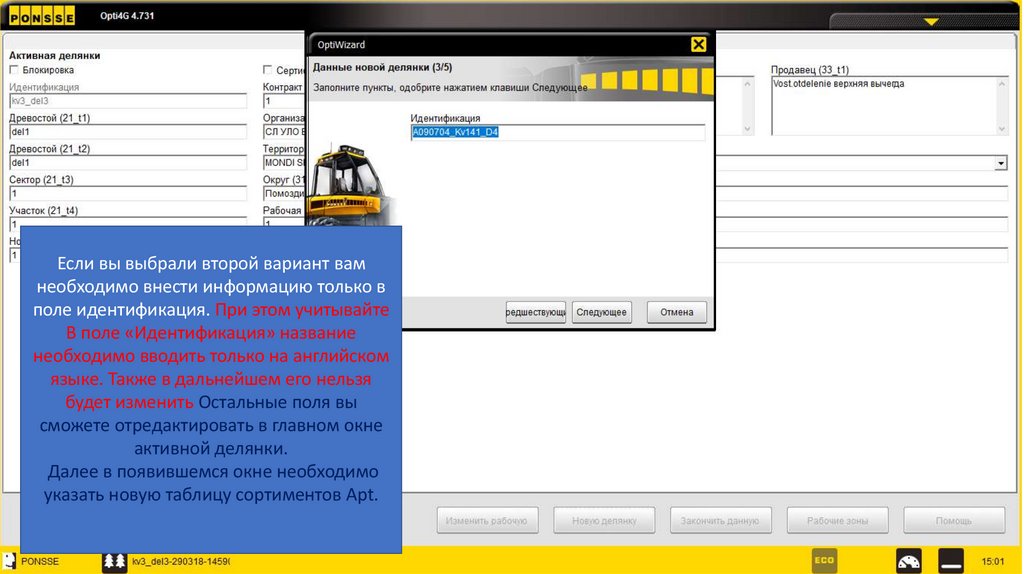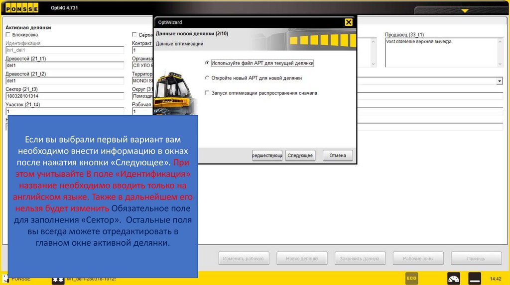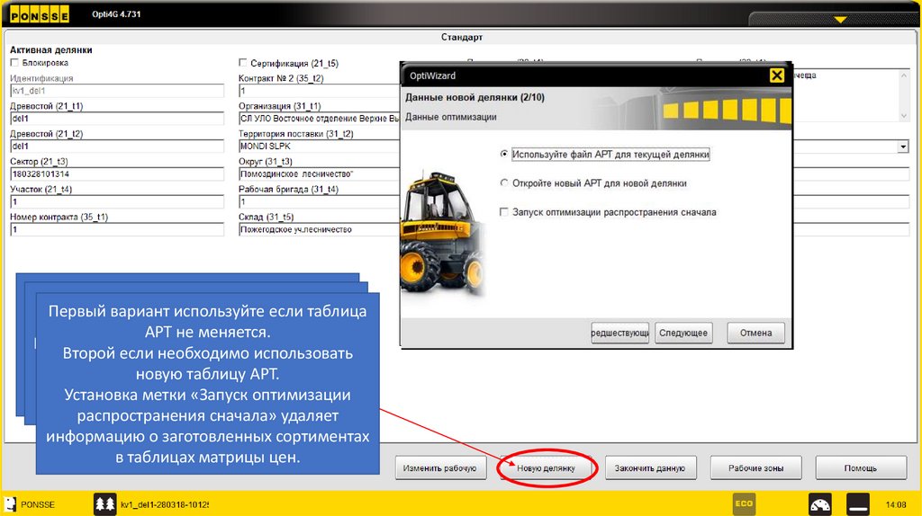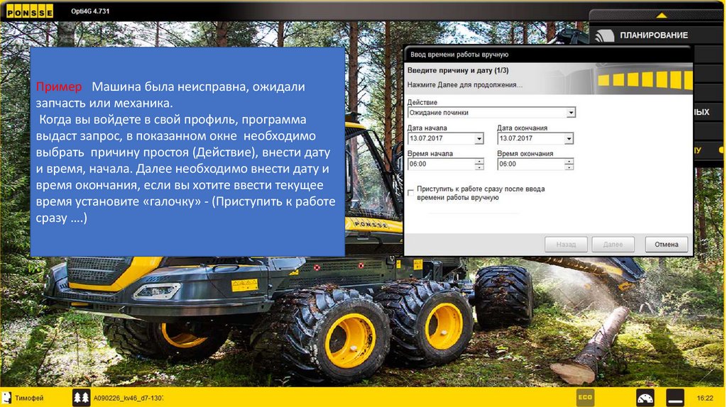 загруженным в данный момент, имеет значение только какая делянка активна. Смена начинается при входе