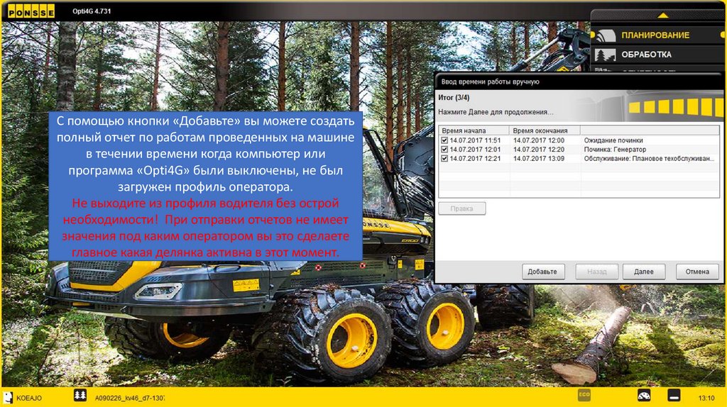 С помощью кнопки «Добавьте» вы можете создатьполный отчет по работам проведенных на машине