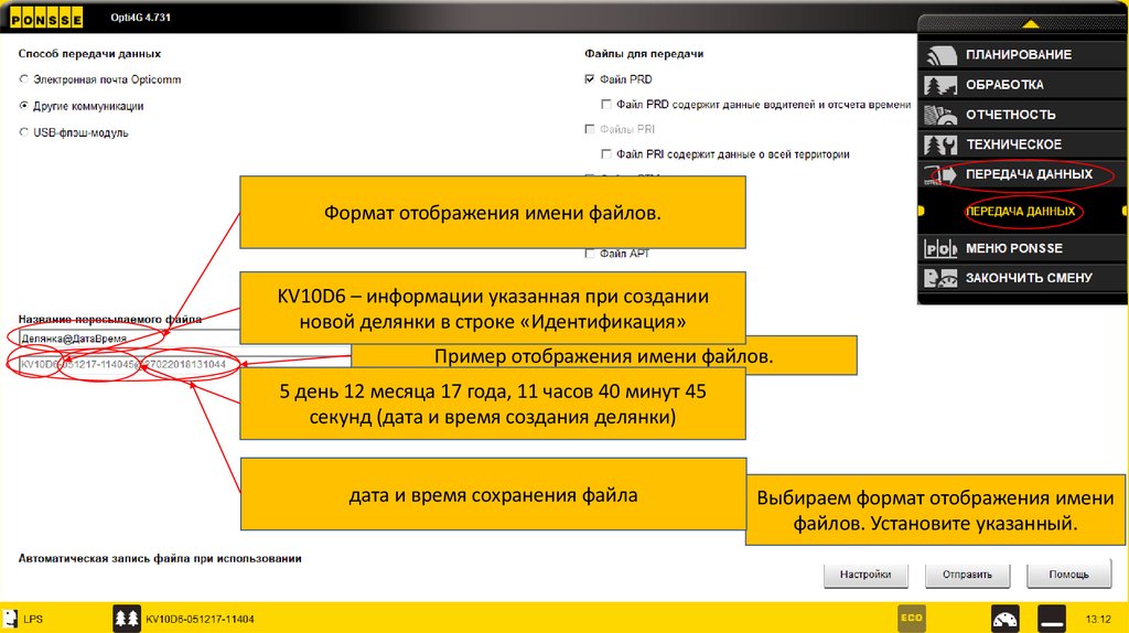 Формат отображения имени файлов.KV10D6 – информации указанная при создании