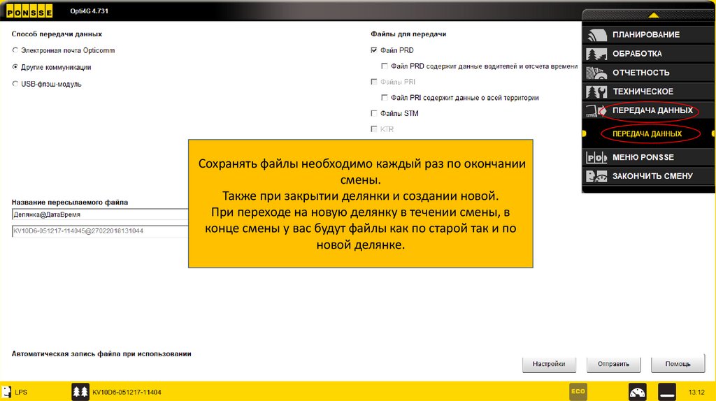 своей смене до ее окончания в программе Opti4G, вы можете отправить данные под любым оператором