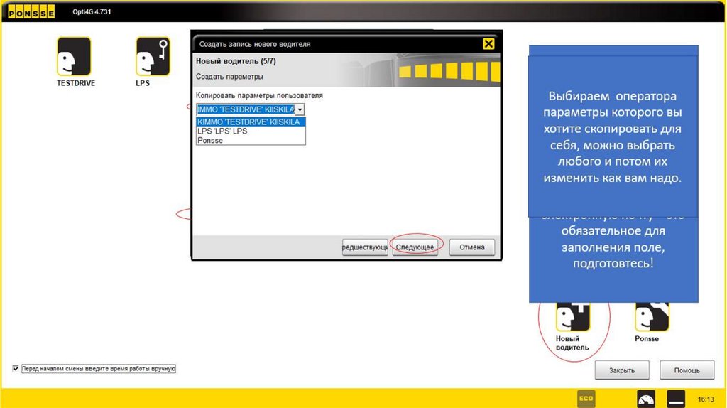 Для корректного сохранения информации по работе машины, и ее дальнейшегоиспользования необходимо создать оператора.