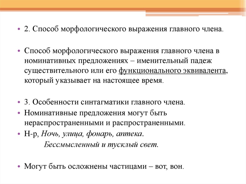 • 2. Способ морфологического выражения главного члена.• Способ морфологического выражения главного члена в