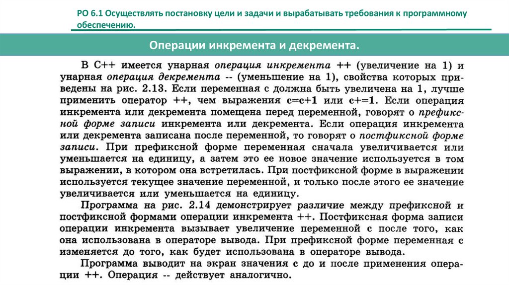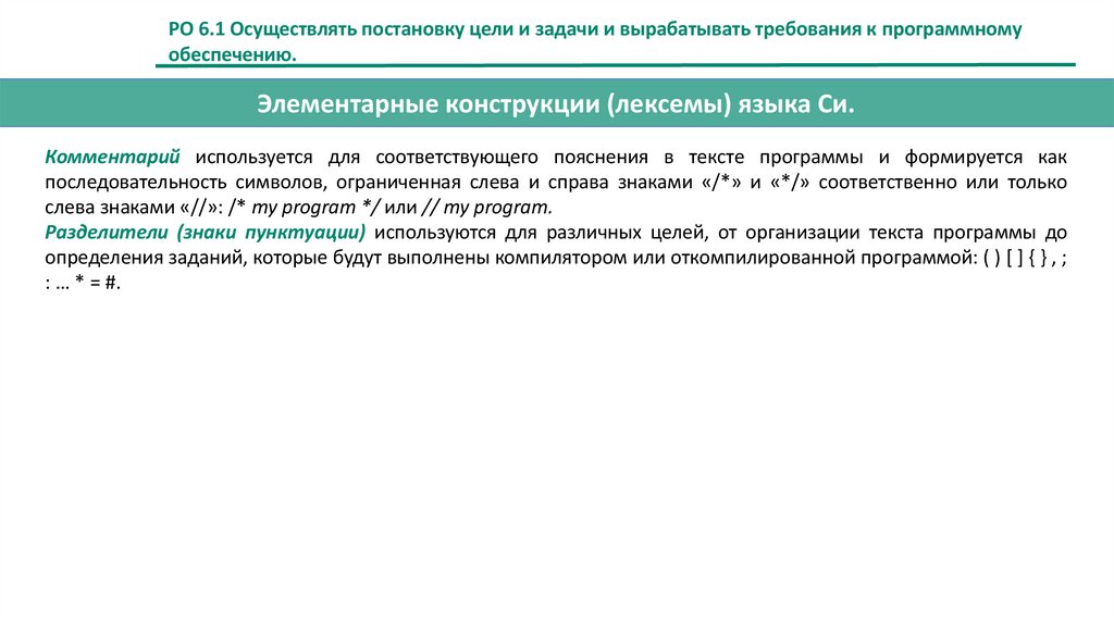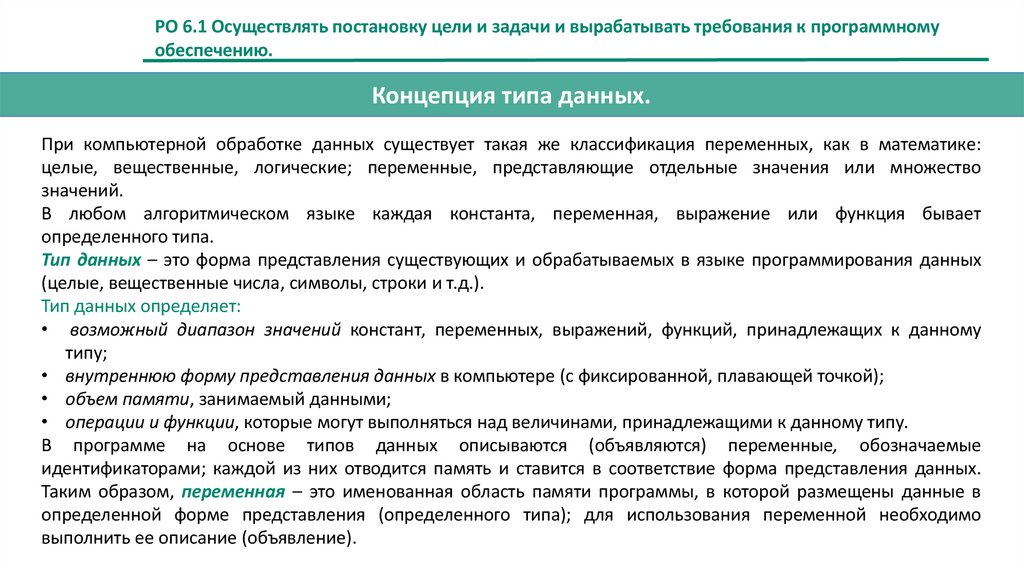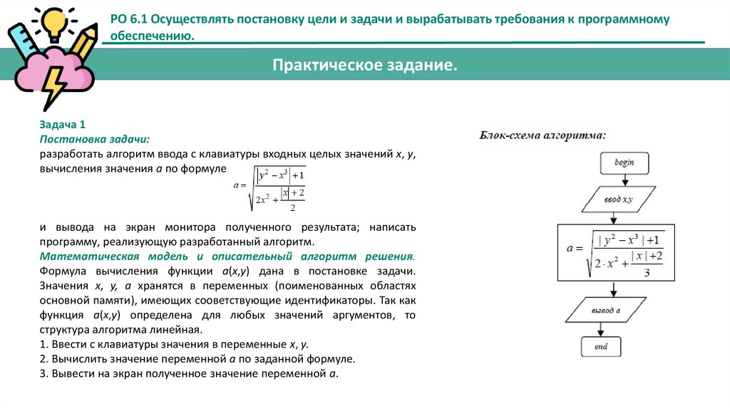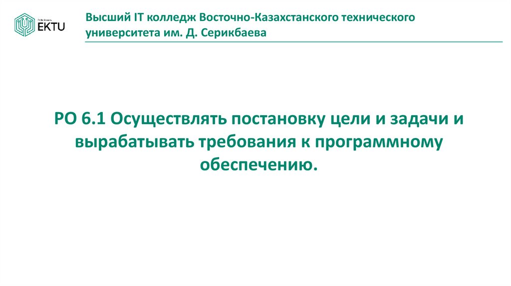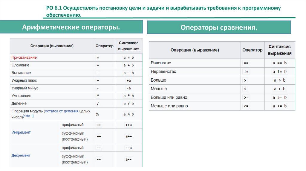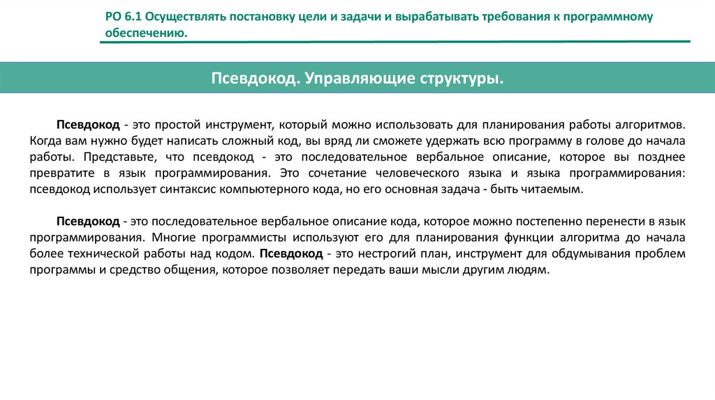 РО 6.1 Осуществлять постановку цели и задачи и вырабатывать требования к программномуобеспечению.