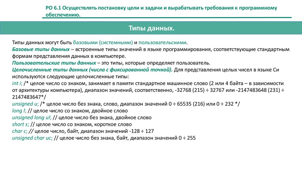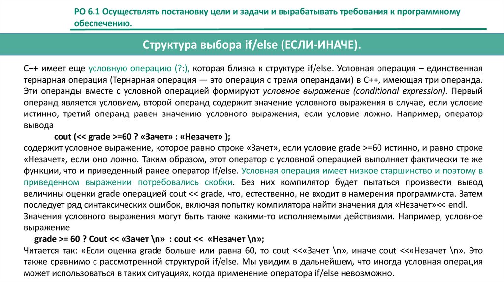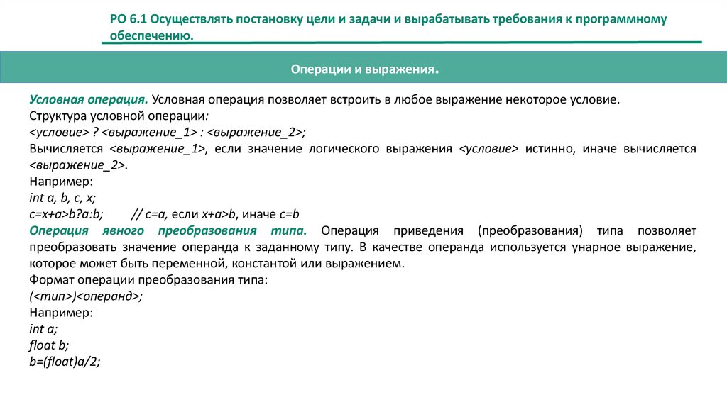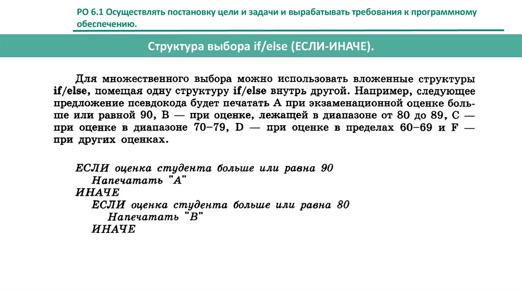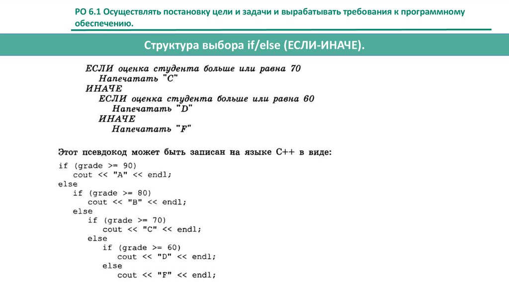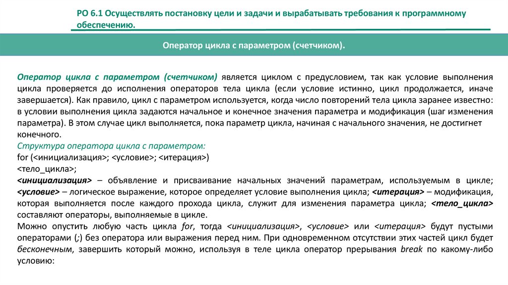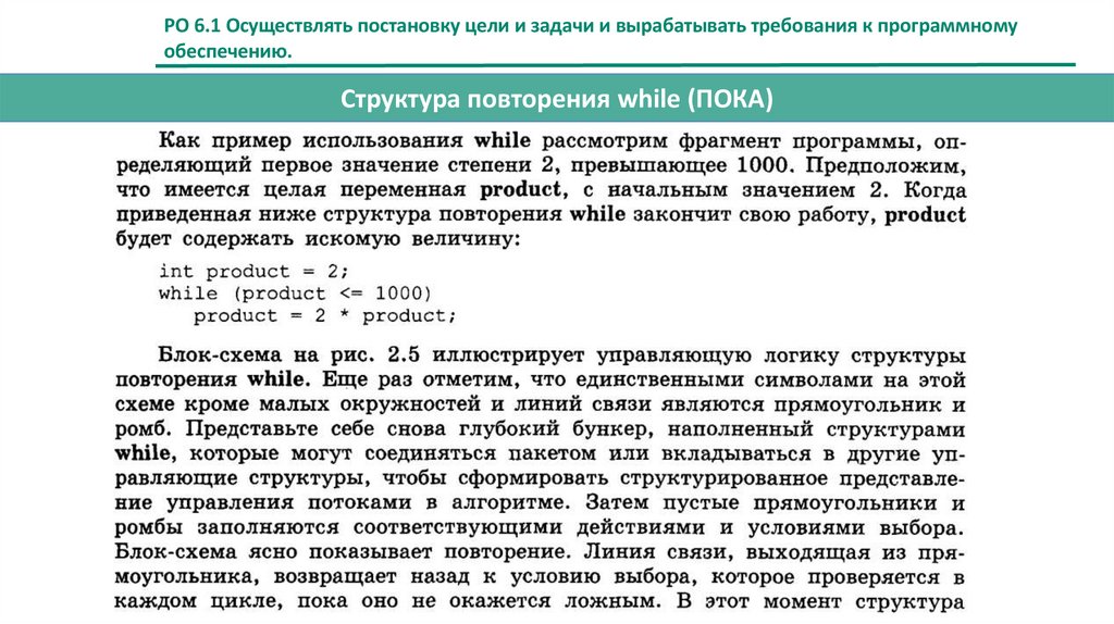 РО 6.1 Осуществлять постановку цели и задачи и вырабатывать требования к программномуобеспечению.