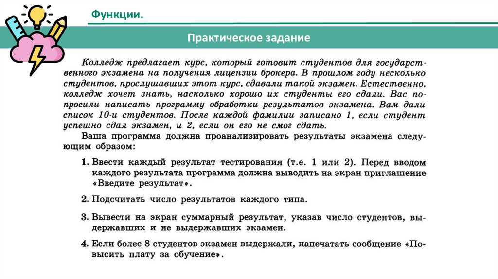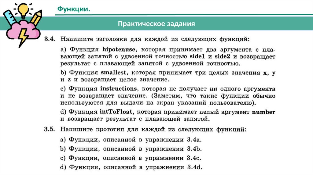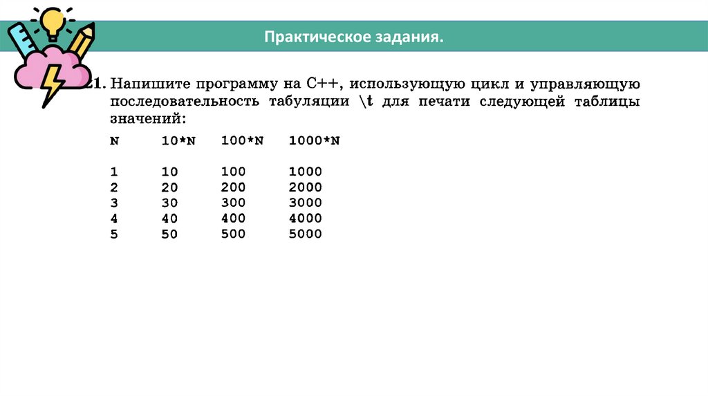 инструкцию return, завершающую выполнение функции main и возвращающую нулевое значение. Седьмая