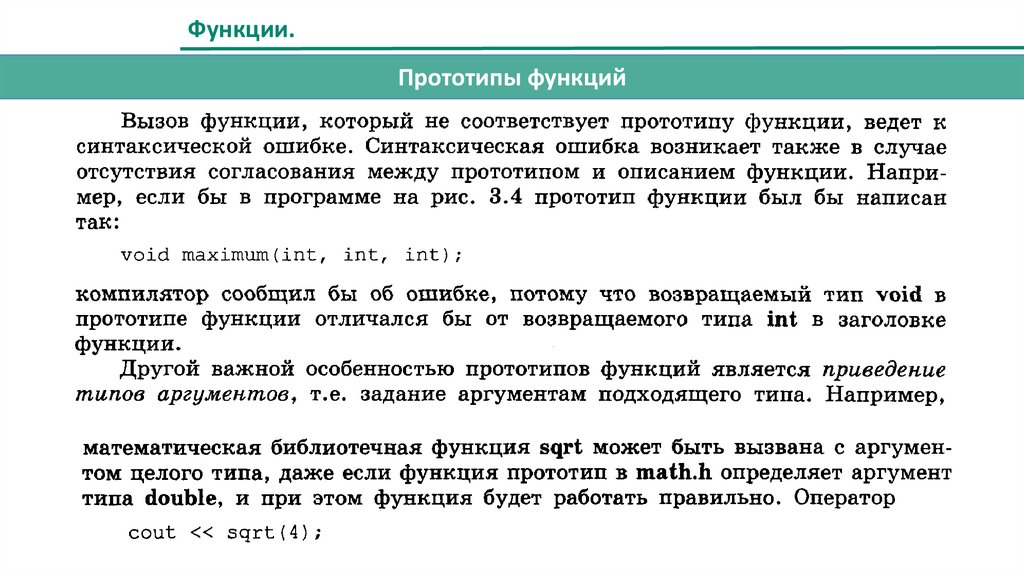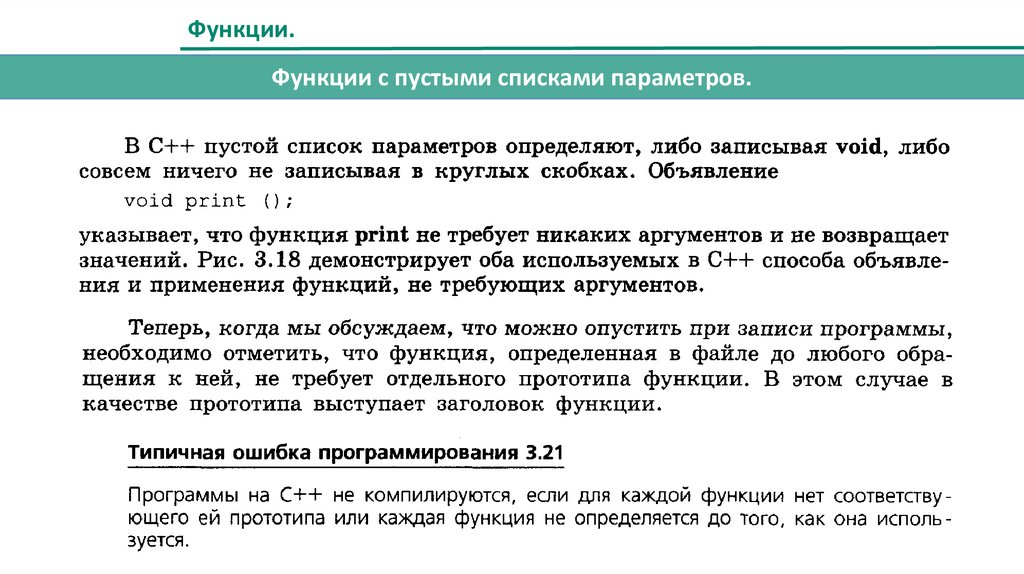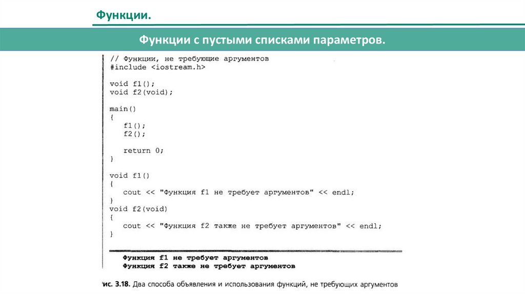 стандартной библиотеке C++. Третья строка содержит объявление функции main, не принимающей никаких