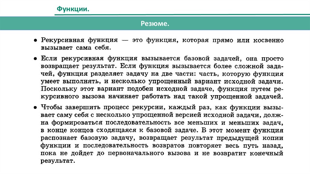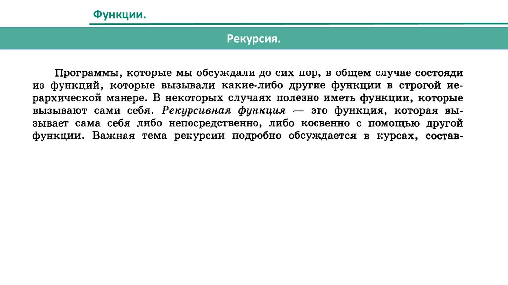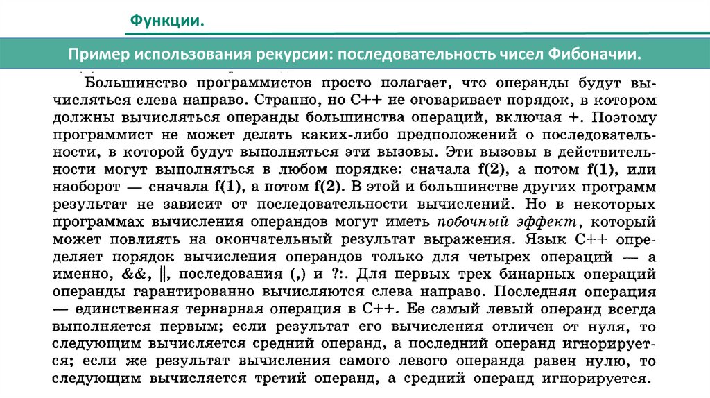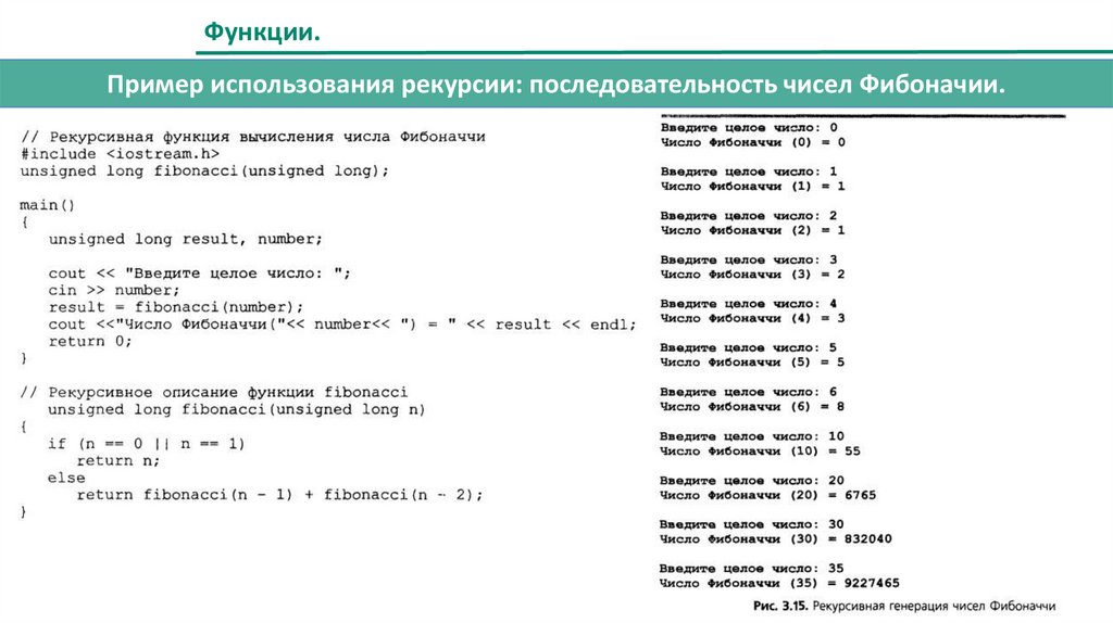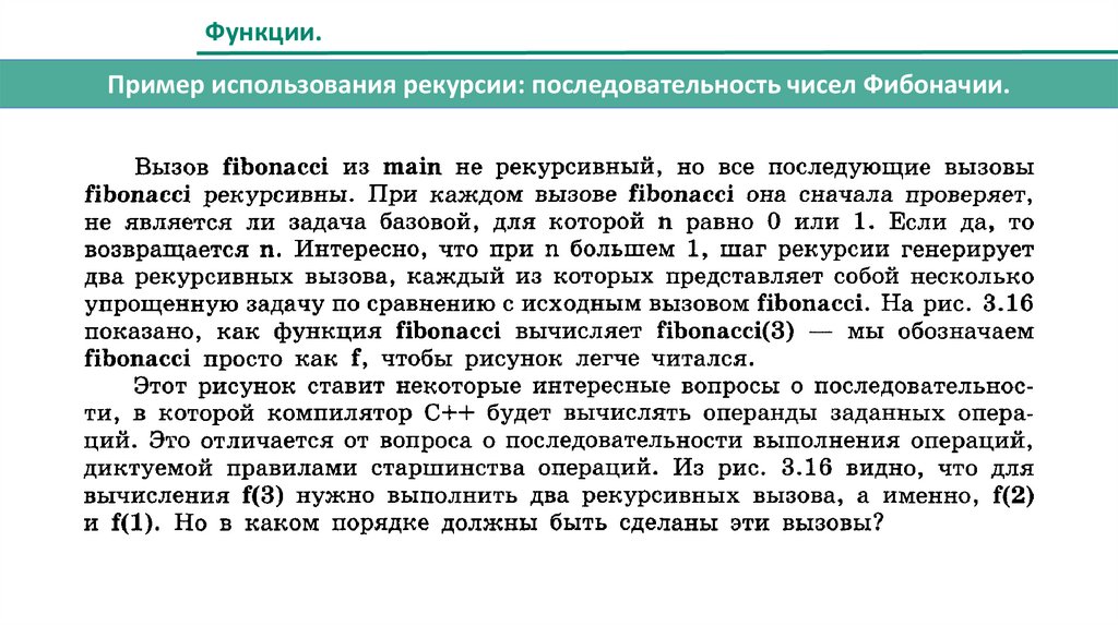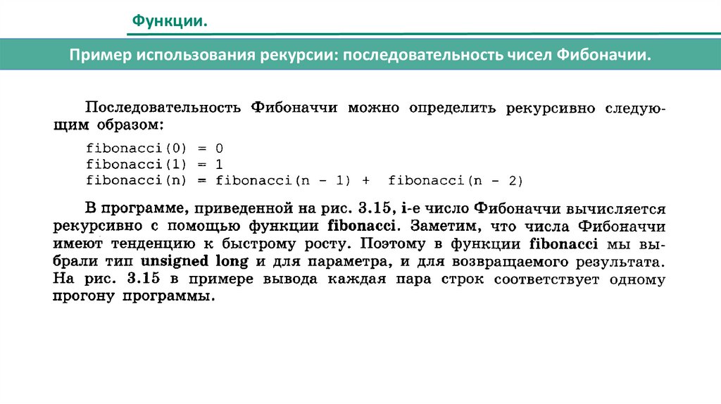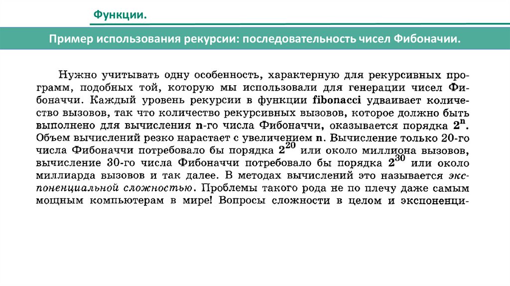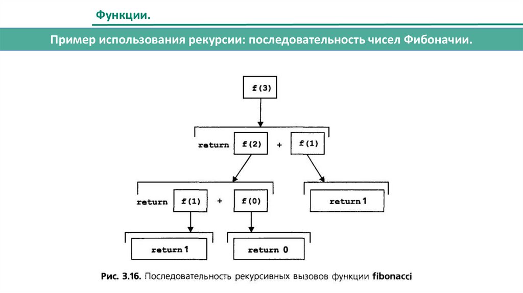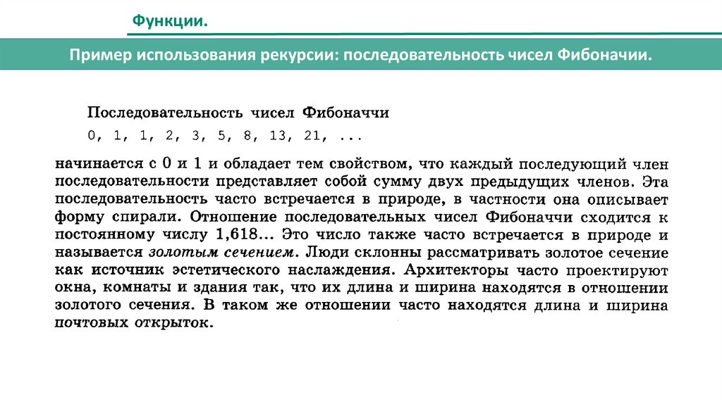 Функции.Пример использования рекурсии: последовательность чисел Фибоначии.