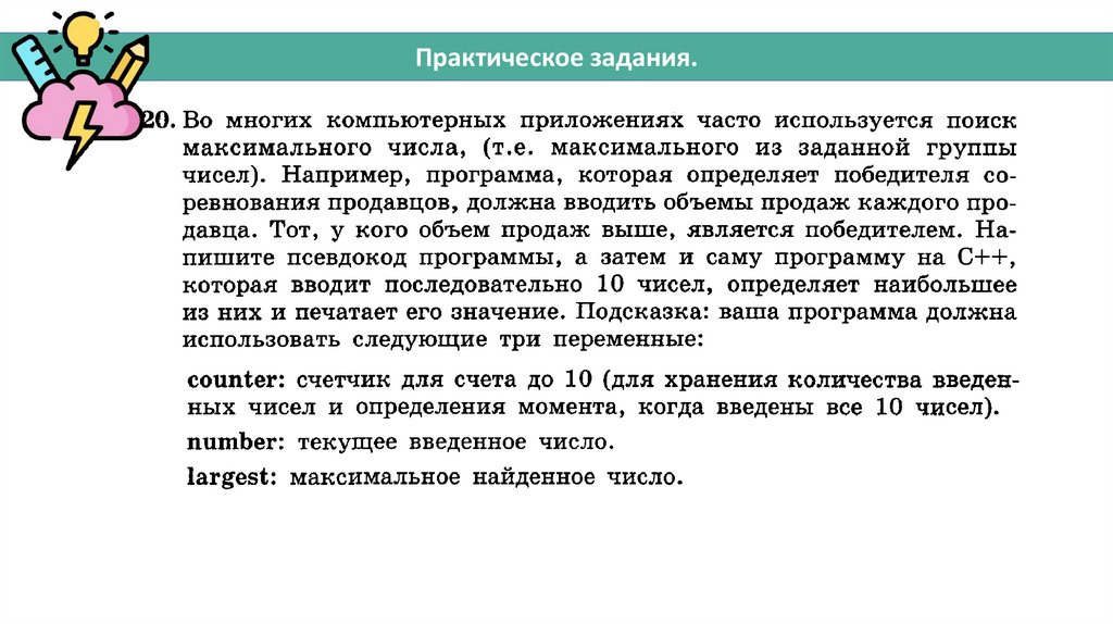 1. разрабатывать и реализовывать алгоритмы с использованием управляющих структур языка
