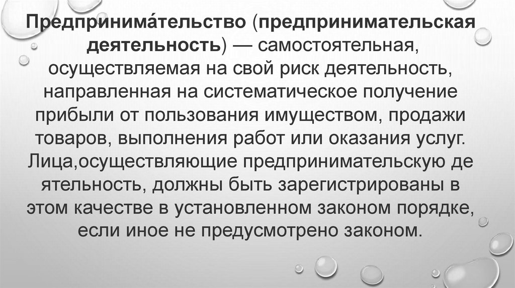 Предпринима́тельство (предпринимательскаядеятельность) — самостоятельная,