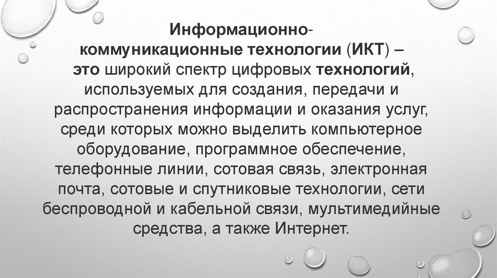Информационнокоммуникационные технологии (ИКТ) –это широкий спектр цифровых технологий,