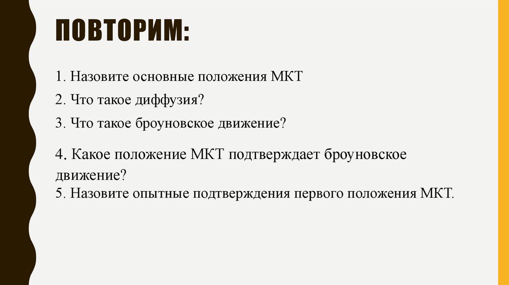 ПОВТОРИМ:1. Назовите основные положения МКТ