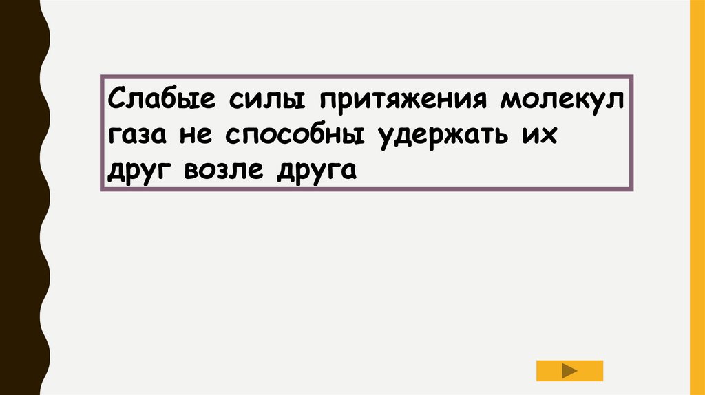 Слабые силы притяжения молекулСлабые силы притяжения молекул газа не способны удержать их