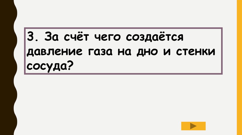 3. За счёт чего создаётсядавление газа на дно и стенки