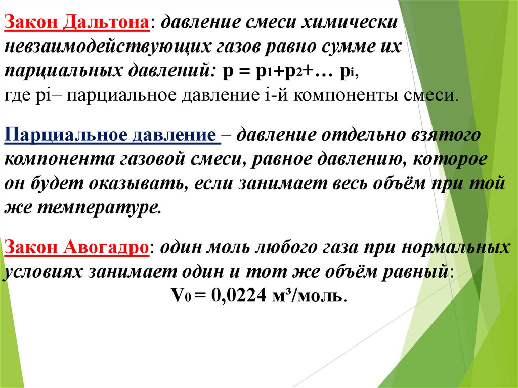 Закон Дальтона: давление смеси химическиневзаимодействующих газов равно сумме их