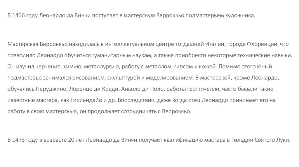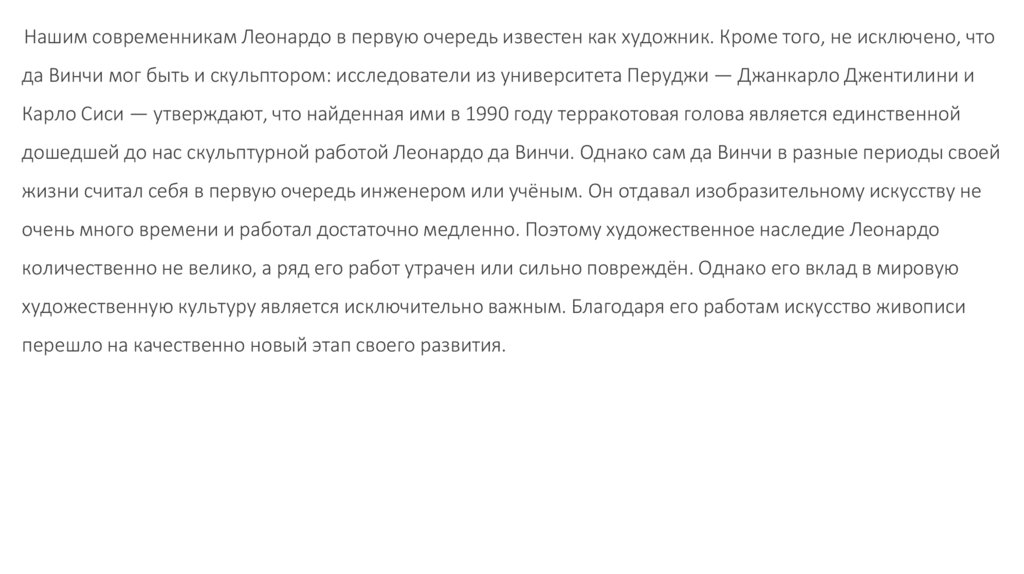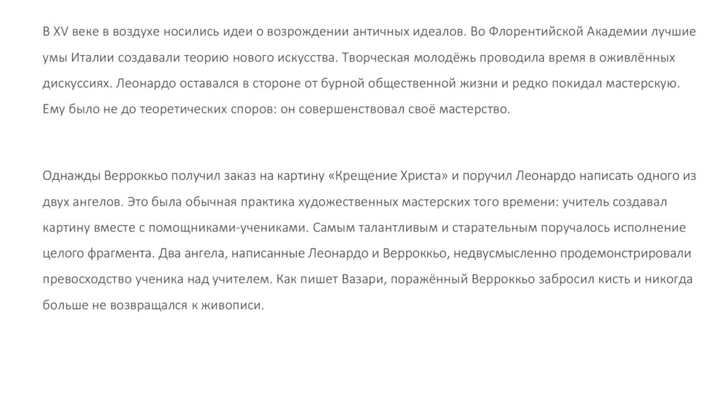 вдохновлялись Леонардо да Винчи, Рафаэль, Микеланджело.