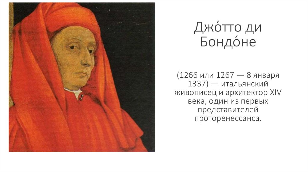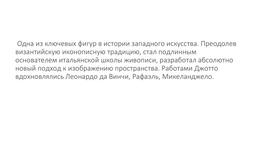 Одна из ключевых фигур в истории западного искусства. Преодолеввизантийскую иконописную традицию, стал подлинным