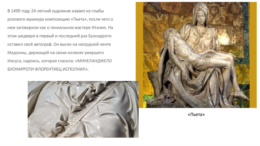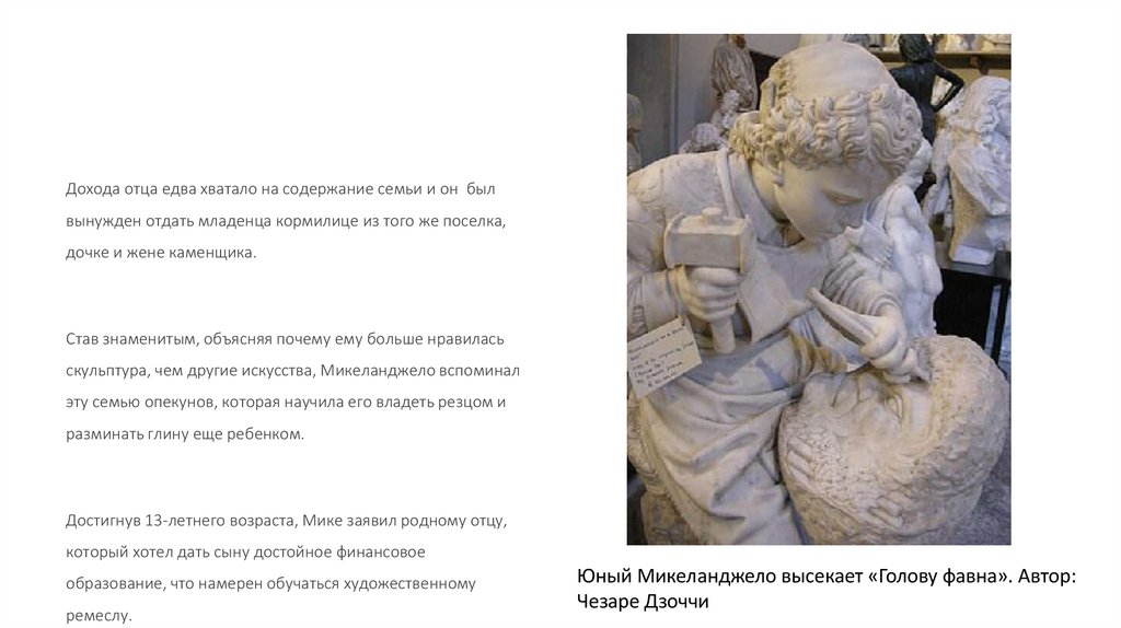 Мраморная статуя работы Микеланджело,впервые представленная флорентийской