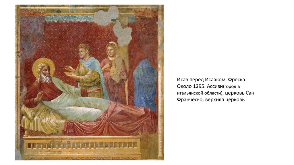 Исав перед Исааком. Фреска.Около 1295. Ассизи(город в