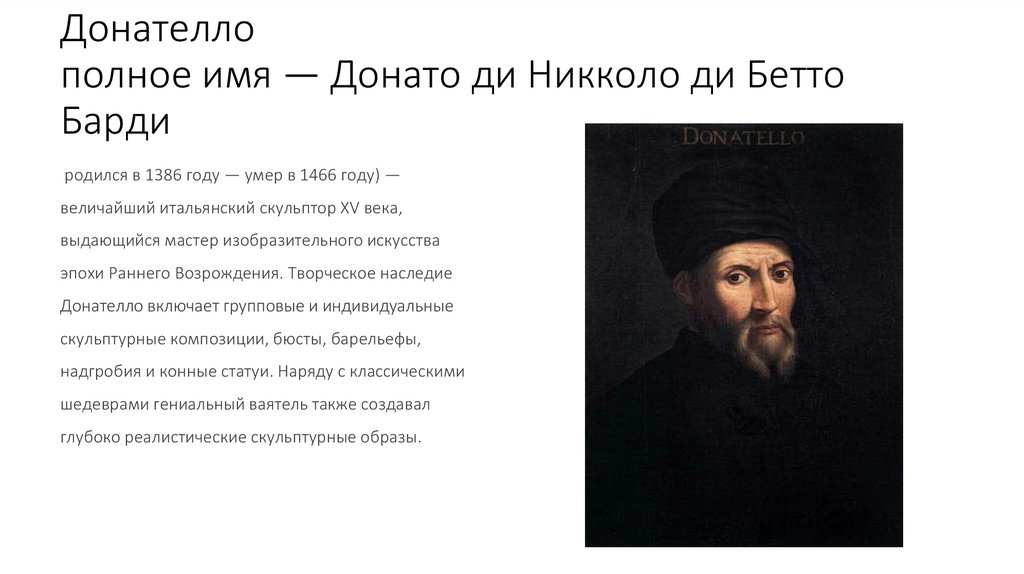 Донателлополное имя — Донато ди Никколо ди Бетто