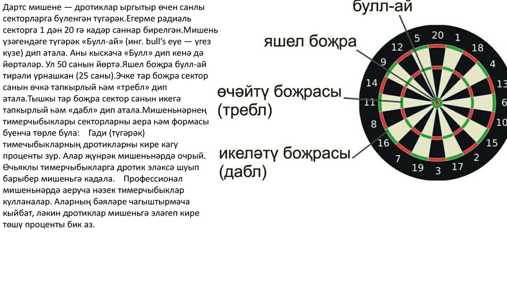 Дартс мишене — дротиклар ыргытыр өчен санлысекторларга бүленгән түгәрәк.Егерме радиаль