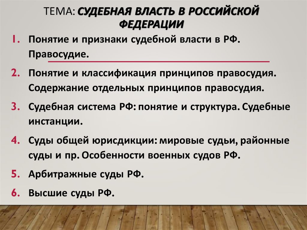 ТЕМА: СУДЕБНАЯ ВЛАСТЬ В РОССИЙСКОЙФЕДЕРАЦИИ