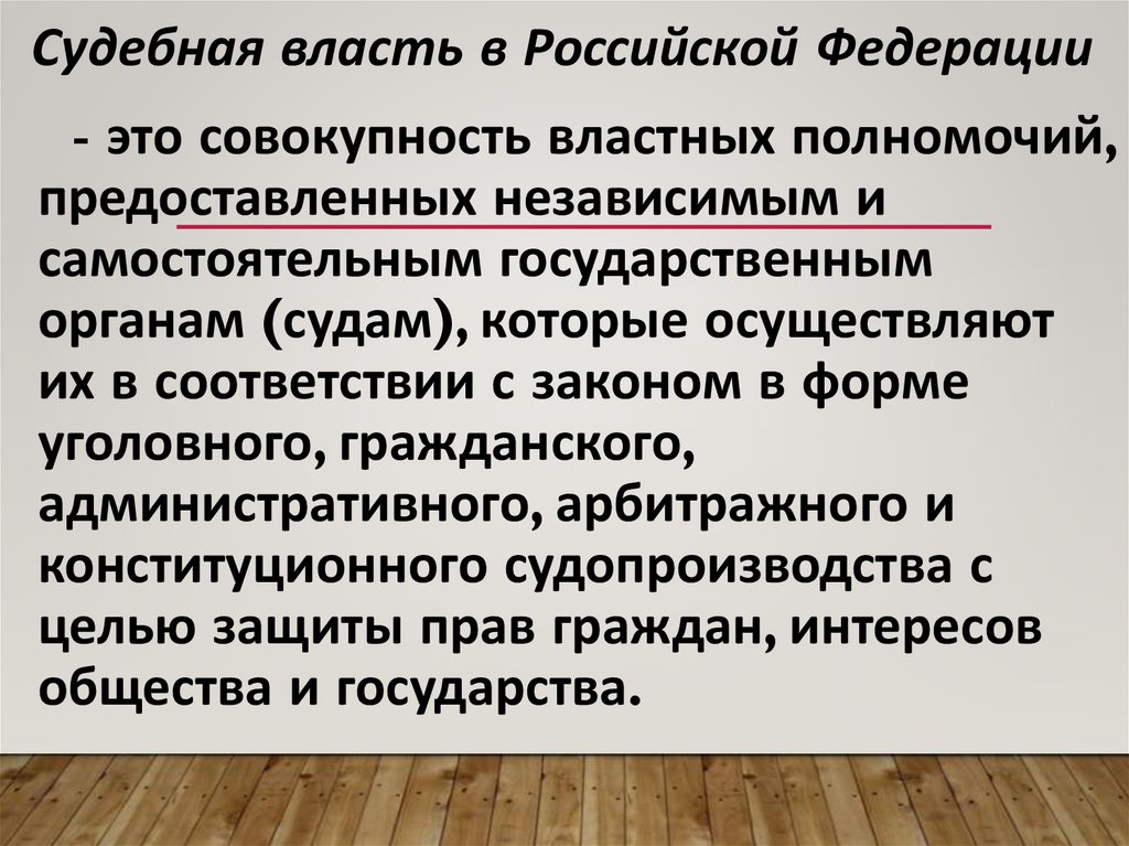 Судебная власть в Российской Федерации- это совокупность властных полномочий,
