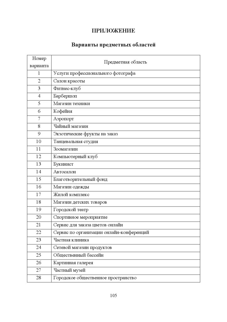 ПРИЛОЖЕНИЕВарианты предметных областей