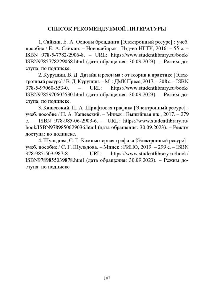 СПИСОК РЕКОМЕНДУЕМОЙ ЛИТЕРАТУРЫ1. Сайкин, Е. А. Основы брендинга [Электронный ресурс] : учеб.