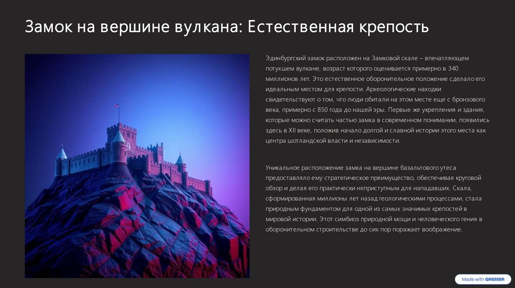 Замок на вершине вул кана: Естественная крепостьЭдинбургский замок расположен на Замковой скале – впечатляющем