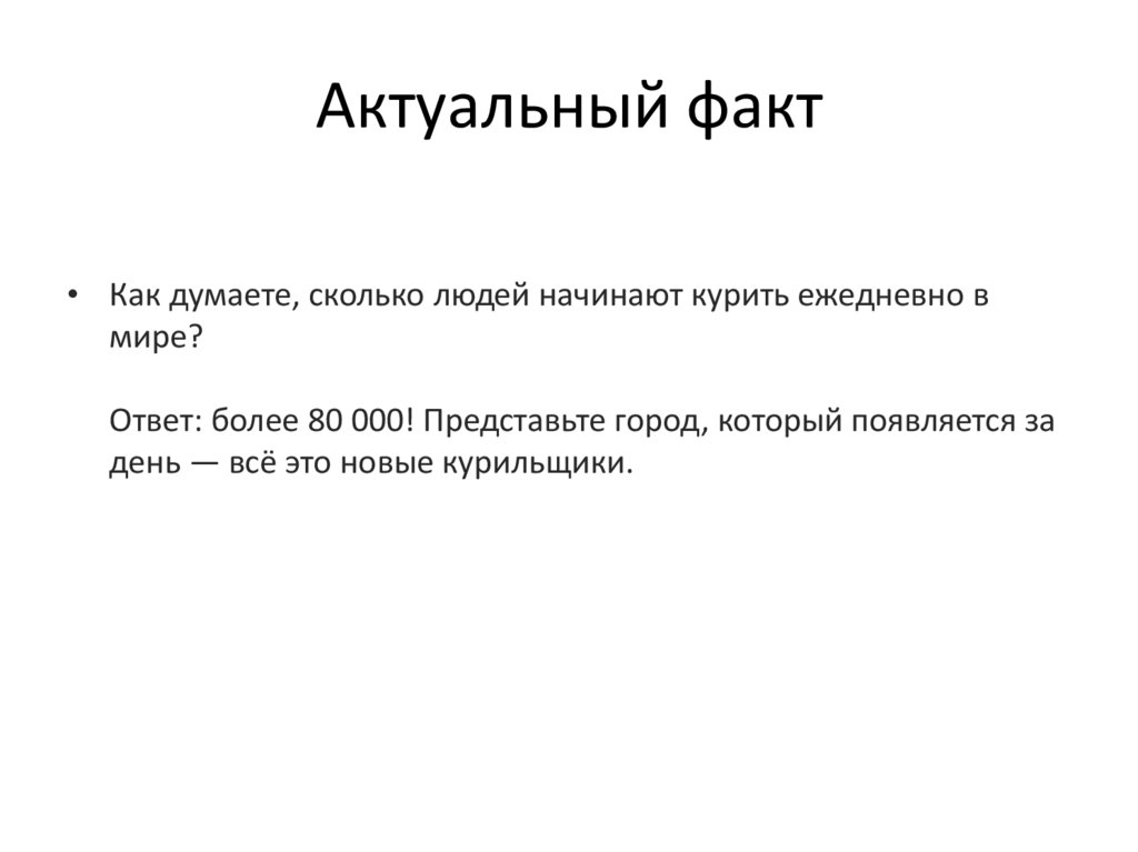 Актуальный факт• Как думаете, сколько людей начинают курить ежедневно в