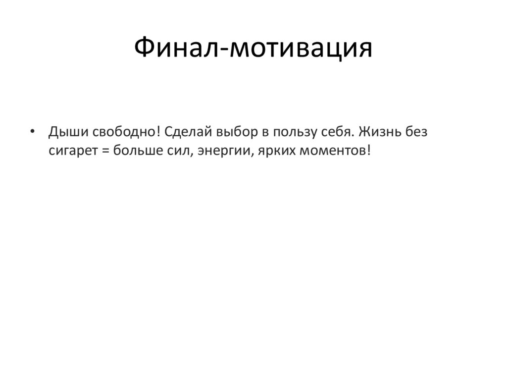 Финал-мотивация• Дыши свободно! Сделай выбор в пользу себя. Жизнь без
