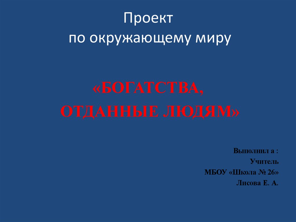 «БОГАТСТВА,ОТДАННЫЕ ЛЮДЯМ»
