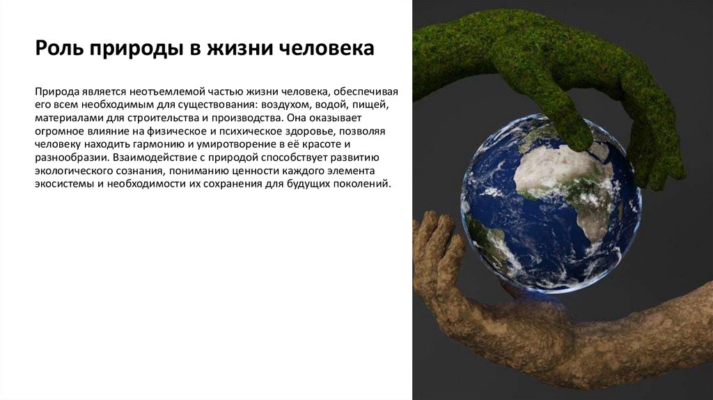 Роль природы в жизни человекаПрирода является неотъемлемой частью жизни человека, обеспечивая