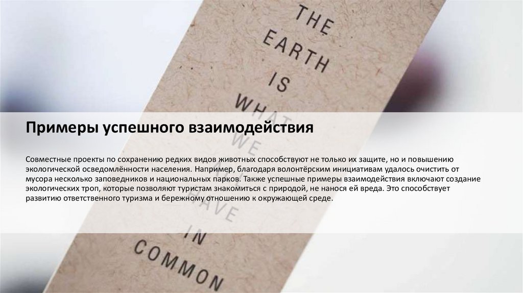 Примеры успешного взаимодействияСовместные проекты по сохранению редких видов животных способствуют не только их защите, но и повышению